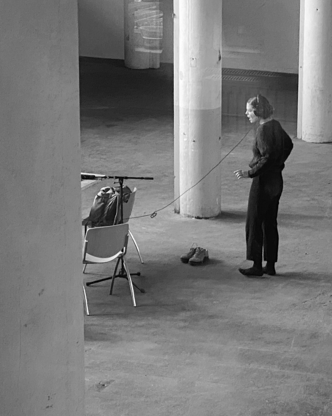 Sophia Leitenmayer is an artist and musician based in Hamburg. Collective approaches and research based processes are important for their work developing interdisciplinary works at the intersection of sound and word, film art, movement, painting and space. The working method is fluid, ephemeral, and process-oriented, and social and political contexts drive their installations and performative interventions.